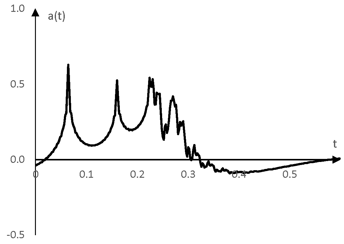 На практика, когато запишем естествените реверберации на едно синусоидно помитане, ще имаме този резултат и ще знаем какво синусоидно помитане е използвано, но няма да знаем импулсния спектър. За да получим импулсния спектър, можем да изчислим конволюцията на този резултат със същото синусоидно помитане, но обърнато във времето. Ако направим това в този пример, ще получим следния импулсен спектър.